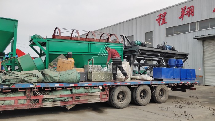 肥料生產(chǎn)設(shè)備廠家程翔重工本次發(fā)貨為年產(chǎn)5萬噸的豬糞有機(jī)肥加工成套設(shè)備,主要的有機(jī)肥生產(chǎn)設(shè)備有:液壓槽式翻堆機(jī)、鏟車喂料機(jī)、半濕物料粉碎機(jī)、臥式攪拌機(jī)、平模擠壓造粒機(jī)、滾筒烘干機(jī)、冷卻機(jī)、滾筒篩分機(jī)、自動包裝秤等等。由于肥料加工設(shè)備較多,因此分為兩車裝貨。