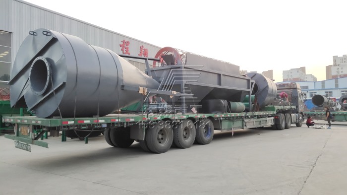 第一車與第二車裝載的是烘干、冷卻機,滾筒烘干機的直徑為1.5米,長度15米,回轉(zhuǎn)式冷卻機的型號小一號,直徑為1.4米,長度為14米。