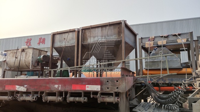 查看 > 20 2020/11由于該豬糞秸稈有機(jī)肥料生產(chǎn)線產(chǎn)量較大,因此分為多車裝置運(yùn)輸。主要的豬糞加工設(shè)備有:大型秸稈粉碎機(jī)、履帶式翻堆機(jī)、臥式攪拌機(jī)、新型三合一造粒機(jī)、不同型號的滾筒篩分機(jī)以及多個型號的烘干冷卻設(shè)備。滾筒烘干設(shè)備風(fēng)頭以及風(fēng)機(jī)安置熱風(fēng)爐以及冷卻設(shè)備多個烘干冷卻設(shè)備履帶式翻堆機(jī)以及大型秸稈粉碎機(jī)二次烘干設(shè)備滾筒篩分機(jī)以及鏟車喂料倉本次豬糞秸稈有機(jī)肥料生產(chǎn)線工藝設(shè)計(jì)流程為:利用大型秸稈粉碎機(jī)將稻草秸稈等粉碎均勻,