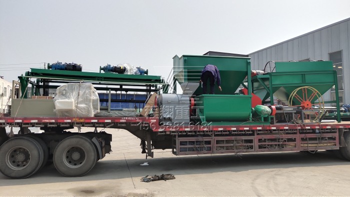 查看 > 01 2021/03本次發(fā)貨的豬糞有機(jī)肥生產(chǎn)線主要設(shè)備有:鏟車喂料、臥式攪拌機(jī)、有機(jī)肥濕法造粒機(jī)、滾筒篩分機(jī)以及烘干設(shè)備。BB肥攪拌機(jī)作為拋圓設(shè)備使用