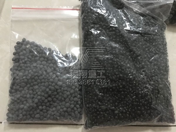 2、產(chǎn)量較小、含水量較低時(shí)(成本較高),使用新型三合一造粒機(jī),不再需要烘干和冷卻,成球率相對(duì)較高,可以達(dá)到90%以上,硬度較好不易散塊。