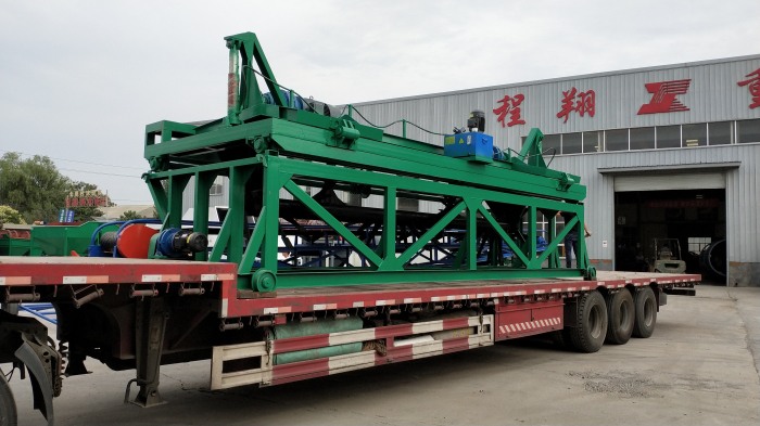 由于該豬糞秸稈有機(jī)肥料生產(chǎn)線產(chǎn)量較大,因此分為多車裝置運(yùn)輸。主要的豬糞加工設(shè)備有:大型秸稈粉碎機(jī)、履帶式翻堆機(jī)、臥式攪拌機(jī)、新型三合一造粒機(jī)、不同型號(hào)的滾筒篩分機(jī)以及多個(gè)型號(hào)的烘干冷卻設(shè)備。滾筒烘干設(shè)備風(fēng)頭以及風(fēng)機(jī)安置熱風(fēng)爐以及冷卻設(shè)備多個(gè)烘干冷卻設(shè)備履帶式翻堆機(jī)以及大型秸稈粉碎機(jī)二次烘干設(shè)備滾筒篩分機(jī)以及鏟車喂料倉(cāng)本次豬糞秸稈有機(jī)肥料生產(chǎn)線工藝設(shè)計(jì)流程為:利用大型秸稈粉碎機(jī)將稻草秸稈等粉碎均勻,