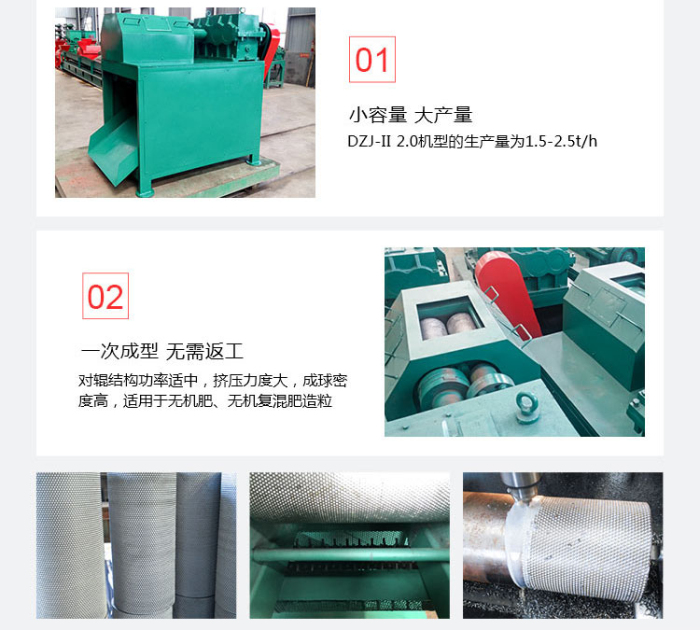 3)設(shè)備特性:不但節(jié)能降耗,而且與其它方法相比,不需要燃油、燃?xì)獾雀稍锎胧?。該新型?duì)輥擠壓造粒設(shè)備,無需另外添加粘合劑。