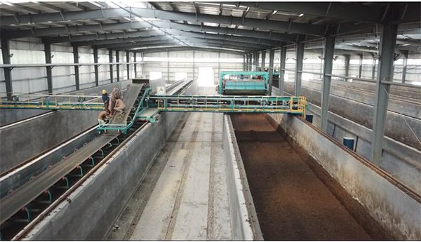 本次牛糞全套有機肥料設(shè)備生產(chǎn)工藝采用槽式好氧發(fā)酵,利用翻堆槽發(fā)酵既干凈又能最大化的利用有限的場地,增加糞便處理量。由于客戶對于顆粒有機質(zhì)含量以及NPK有特殊要求,因此我們?yōu)榭蛻魧iT定制了一臺三倉的靜態(tài)配料系統(tǒng)。