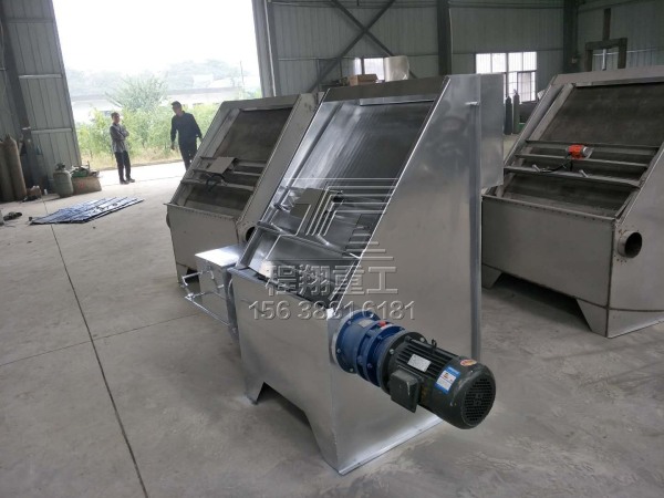 堆肥處理的原料是固體糞便。固體糞便的來源為干清糞和通過固液分離方法從“水泡糞”中分離出的固體物。要實現(xiàn)固液分離,應(yīng)用最廣泛、分離效果最好的是機械分離。機械分離設(shè)備可分為篩分分離、離心分離、壓濾分離和螺旋擠壓分離4種類型。篩分分離機械:用于畜禽糞便分離的篩分機械主要有斜板篩和振動篩。篩條截面形狀為楔形的斜板篩,用于糞便分離具有結(jié)構(gòu)簡單、不堵塞等特點。但固體物質(zhì)去除率較低,一般小于25%。