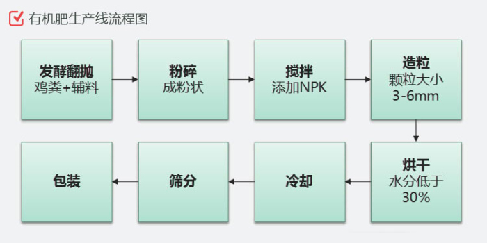 查看 > 13 2020/10本次發(fā)貨的設(shè)備是程翔重工是為江西某客戶定制的,簡單的年產(chǎn)1萬噸雞糞有機肥生產(chǎn)線,主要設(shè)備有:鏈?zhǔn)椒鬯闄C、滾筒篩分機、濕法攪齒造粒機、鏟車喂料倉以及自動包裝秤。改雞糞生產(chǎn)線的工作流程為:發(fā)酵——粉碎——攪拌——造粒——篩分——包裝運輸1.發(fā)酵是第一步,畜禽糞便含有大量病蟲卵,需要進(jìn)