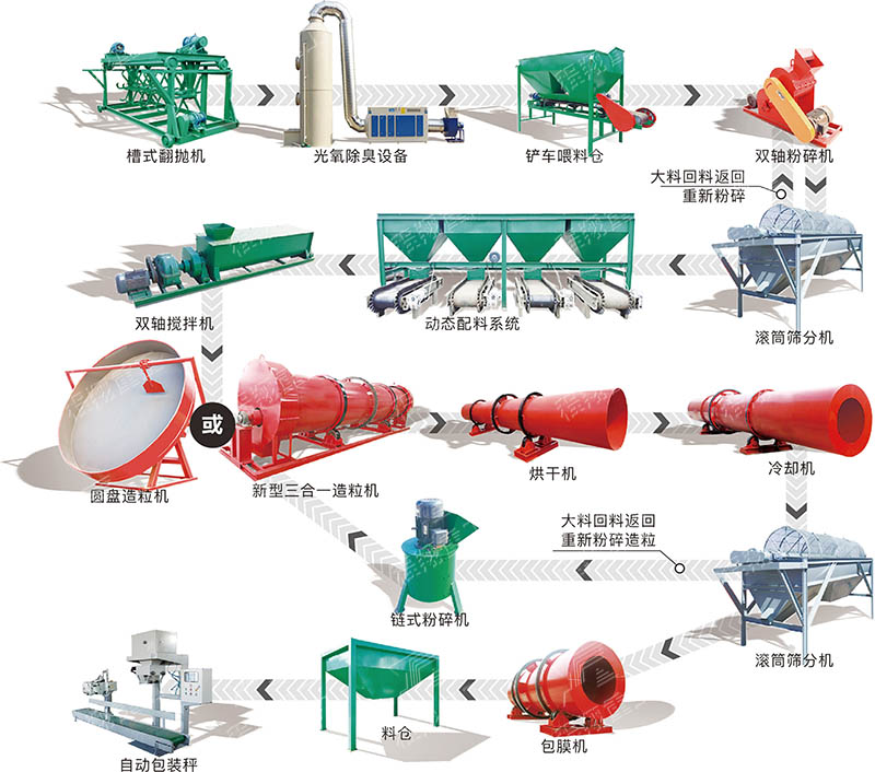 翻堆發(fā)酵設備 造粒設備 粉碎設備 攪拌設備 烘干冷卻設備 篩分設備 配料包裝設備 輸送設備 解決方案
