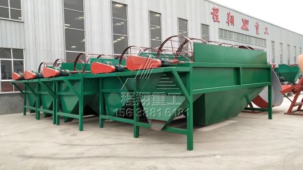 查看 > 13 2020/10本次發(fā)貨的設(shè)備是程翔重工是為江西某客戶定制的,簡單的年產(chǎn)1萬噸雞糞有機肥生產(chǎn)線,主要設(shè)備有:鏈?zhǔn)椒鬯闄C、滾筒篩分機、濕法攪齒造粒機、鏟車喂料倉以及自動包裝秤。改雞糞生產(chǎn)線的工作流程為:發(fā)酵——粉碎——攪拌——造粒——篩分——包裝運輸1.發(fā)酵是第一步,畜禽糞便含有大量病蟲卵,需要進