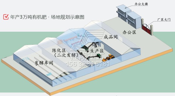 生態(tài)有機肥料的生產是一個農業(yè)廢棄物資源化的項目,生態(tài)有機肥料生產企業(yè)可大可小,國家沒有標準化要求。但如果想生產標準肥料,就需要規(guī)?;膹S區(qū)設計,這樣既符合環(huán)保要求又能美化企業(yè)面貌。生態(tài)有機肥廠包括以下幾個分區(qū)。