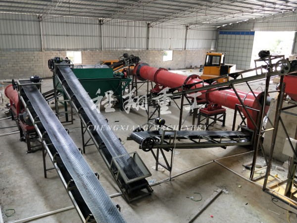 查看 > 20 2020/11由于該豬糞秸稈有機肥料生產(chǎn)線產(chǎn)量較大,因此分為多車裝置運輸。主要的豬糞加工設(shè)備有:大型秸稈粉碎機、履帶式翻堆機、臥式攪拌機、新型三合一造粒機、不同型號的滾筒篩分機以及多個型號的烘干冷卻設(shè)備。滾筒烘干設(shè)備風(fēng)頭以及風(fēng)機安置熱風(fēng)爐以及冷卻設(shè)備多個烘干冷卻設(shè)備履帶式翻堆機以及大型秸稈粉碎機二次烘干設(shè)備滾筒篩分機以及鏟車喂料倉本次豬糞秸稈有機肥料生產(chǎn)線工藝設(shè)計流程為:利用大型秸稈粉碎機將稻草秸稈等粉碎均勻,